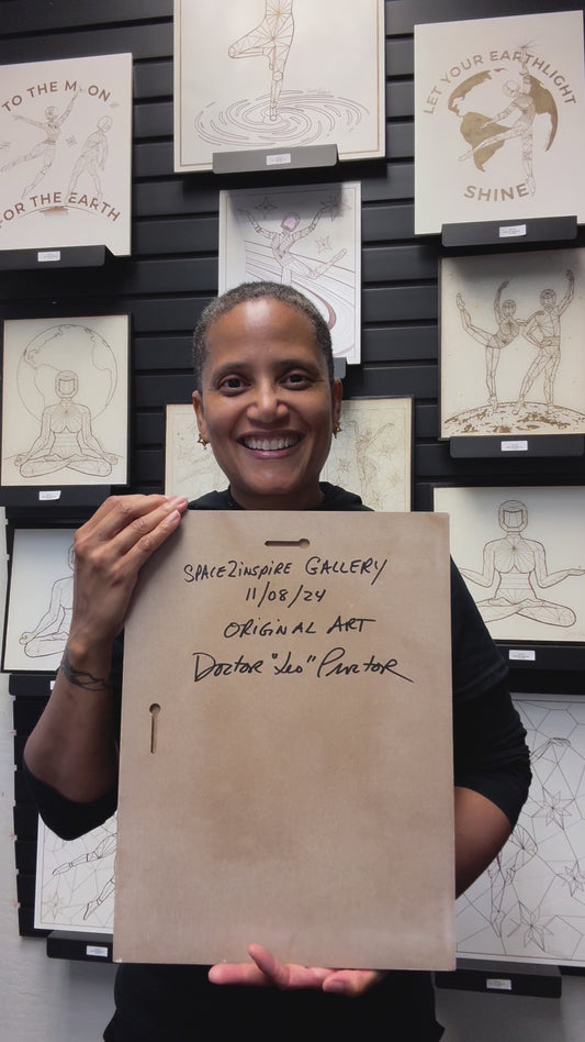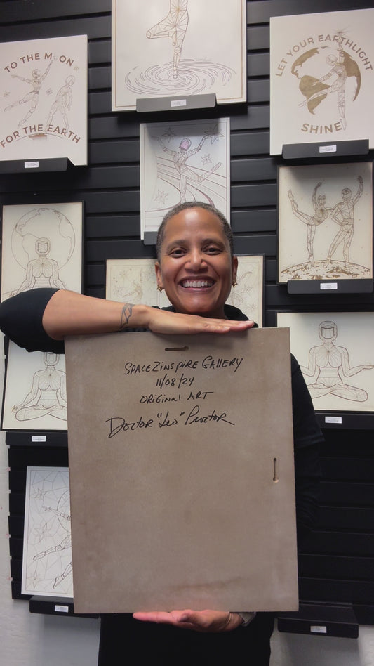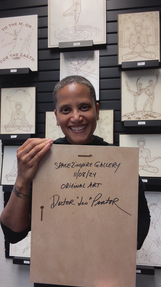 Afrobotica Leap and Afroboticus Cobalt on Moon White Panel 16" x 20"